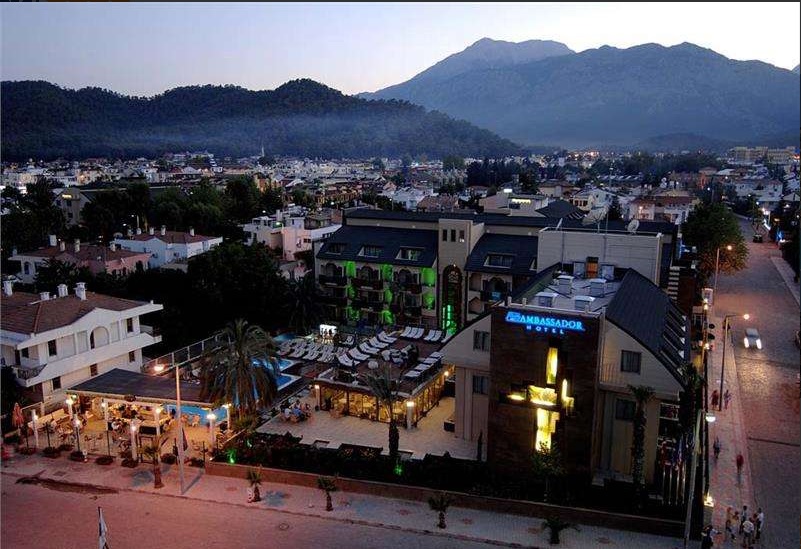 Hotel Ambassador 4*, Kemer (Turska) - Hotel se nalazi u centru letovališta Kemer. Ima sopstvenu, šljunkovitu plažu koja se nalazi preko puta ulice i udaljena je 250 m od hotela. Hotel Ambassador Plaza je udaljen 55 km od aerodroma u Antaliji. Prostire se na površini od 22.500 m².