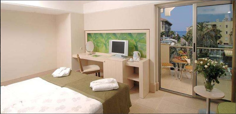 Hotel čine čine tri trospratne, dve četvorospratne i park zgrada (depadans udaljen je 900 m od glavne zgrade). Hotel ima 201 standardnu sobu (1 soba za osobe sa posebnim potrebama, max 3 osobe, 25 m²). Svaka soba je klimatizovana i poseduje televizor, telefon, mini bar (plaća se), sef (plaća se), WiFi (plaća se).