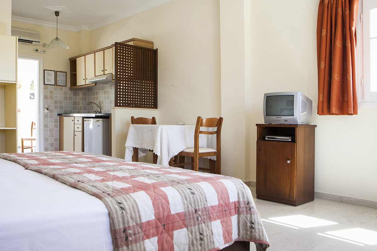 VILA ANDREW'S STUDIOS - Oni koji žele da se potpuno opuste na odmoru naći će ovde dragulj u popularnom letovalištu Lassi. Možete gledati kako sunce zalazi uveče, a tokom dana možete uživati u pogledu sa ivice bazena. Hotel ima porodičan osećaj i odmah se osećate kao kod kuće. Opuštajući bazen sa prekrasnim pogledom sa koga se vidi more i horizont zajedno sa krošnjama zelenog drveća, što doprinosi prijatnom osećaju odmora. Mirna lokacija olakšava opuštanje i samo boravak.Vila se nalazi na oko 400m od centra Lassija i na oko 600m od plaže. Objekat raspolaže sa dvokrevetnim i trokrevetnim studijima koji su locirani u prizemlju, prvom i drugom spratu.