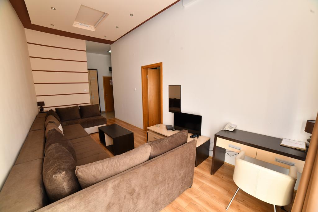 - Apartman 2+2, 2+3 (max 5 osoba): moderno apartman (35-40m2 ) sa odvojenom spavaćom sobom sa francuskim ležajem + dnevni boravak sa garniturom na razvlačenje, opremljenom kuhinjom, kupatilom, pratećom opremom: LCD TV, telefon, sef, minibar, wireless internet.Nalazi se u objektu Zoned 1.