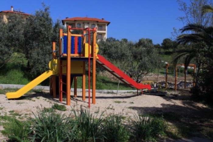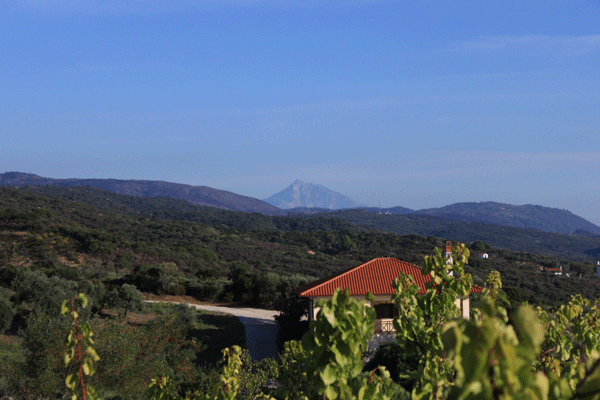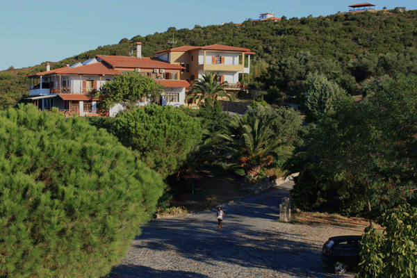 Lokacija: Smešten je u pošumljenoj padini trećeg prsta Halkidikia odnosno na poluostrvu Atos na putu ka Uranopolisu. Udaljenost od plaže je 500 m, od aerodroma 120 km, a od grada Uranopolisa 5 km.