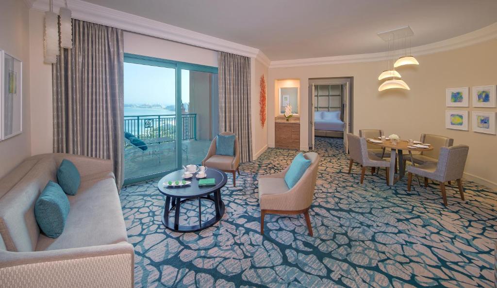 Hotel Atlantis The Palm raspolaže sa 1539 soba; ima ukupno 23 restorana i barova (internacionalna, azijska, kineska, japanska, italijanska, orijentalna, libanska kuhinja), 2 spoljašnja bazena, spa centar, salon lepote, fitnes, noćni klub, 3 terena za tenis sa tvrdom podlogom, stoni tenis, 2 kluba za decu, igralište za decu, salu za sastanke, prodavnice i butike.
