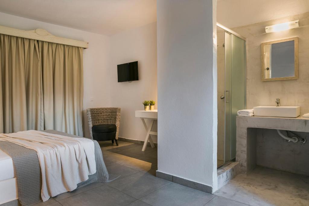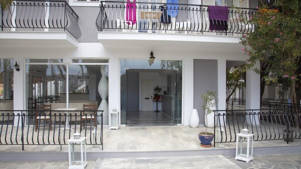 Ovaj objekat udaljen je oko 2 km od plaže Avitos i 1,2 km od plaže Ames (Ammes). Sobe poseduju balkon.