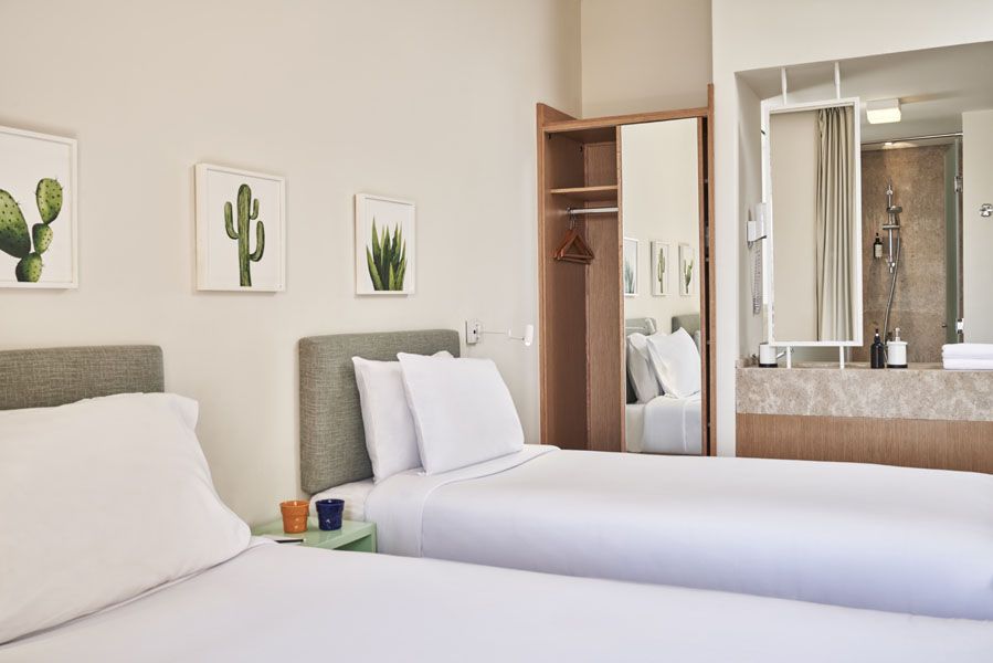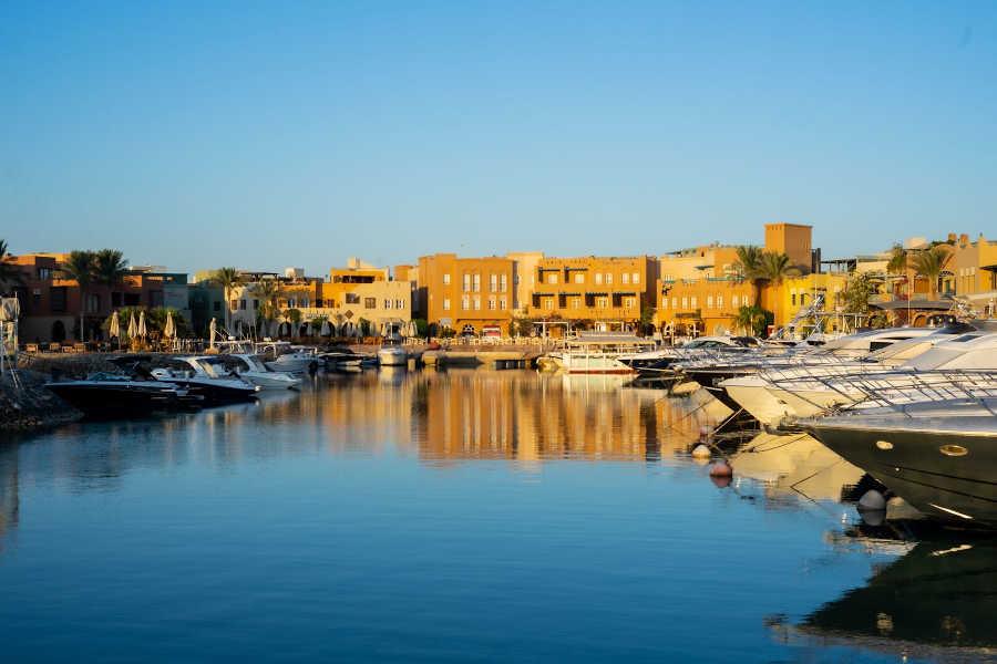 Smeštaj: Standardne sobe imaju pogled na ulicu ili dvorište, marina view sobe su sa pogledom na promenadu, dok se iz apartmana pruža panoramski pogled na Abu Tig marinu. Standardne sobe su veličine između 16 i 30m² i sadrže kupatilo sa tuš kabinom, klima uređaj, TV sa satelitskim kanalima, set za čaj i kafu, fen za kosu, sef, pojedine sobe poseduju balkon.