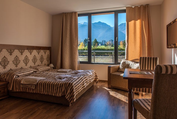 Sadržaj hotela: recepcija, lobi, lobi bar, restoran, spa centar, zatvoreni bazen sa toplom mineralnom vodom od 30 stepeni, finska sauna, aroma parno kupatilo, ruska masaža, masaža tuševima, relax soba, wifi, shuttle bus prevoz do gondole, parking