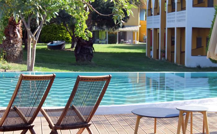 Sadržaj hotela: Okružen maslinama, ovaj elegantni butik hotel nudi otvorene bazene sa odrasle i decu, mini wellness centar, kao i 2 restorana i 3 bara. Na hotelskoj plaži i kraj bazena naći ćete besplatne ležaljke i suncobrane, kao i tuševe i svlačionice. Na raspolaganju su vam i parking u hladu, bilijar, stoni tenis, odbojka na pesku i mali bioskop na otvorenom.