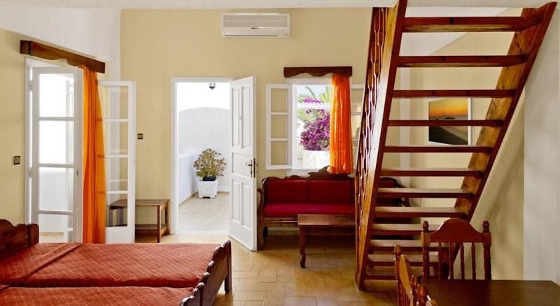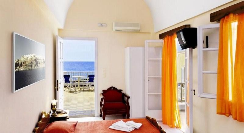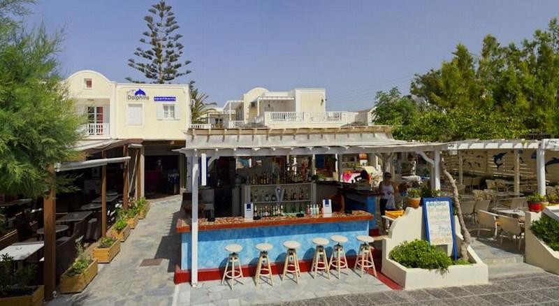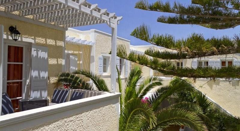 Lokacija: nalazi se 20m od široke i duge peščano-šljunkovite plaže u centru mesta Kamari (šetalište između). Od glavnog grada Fire i litice sa pogledom, do kojih redovno saobraća autobuski prevoz, hotel je udaljen oko 8km, a od aerodroma oko 4 km. U neposrednoj bilizini hotela, na šetalištu pored mora se nalazi veliki broj restorana, taverni, kafića i prodavnica.