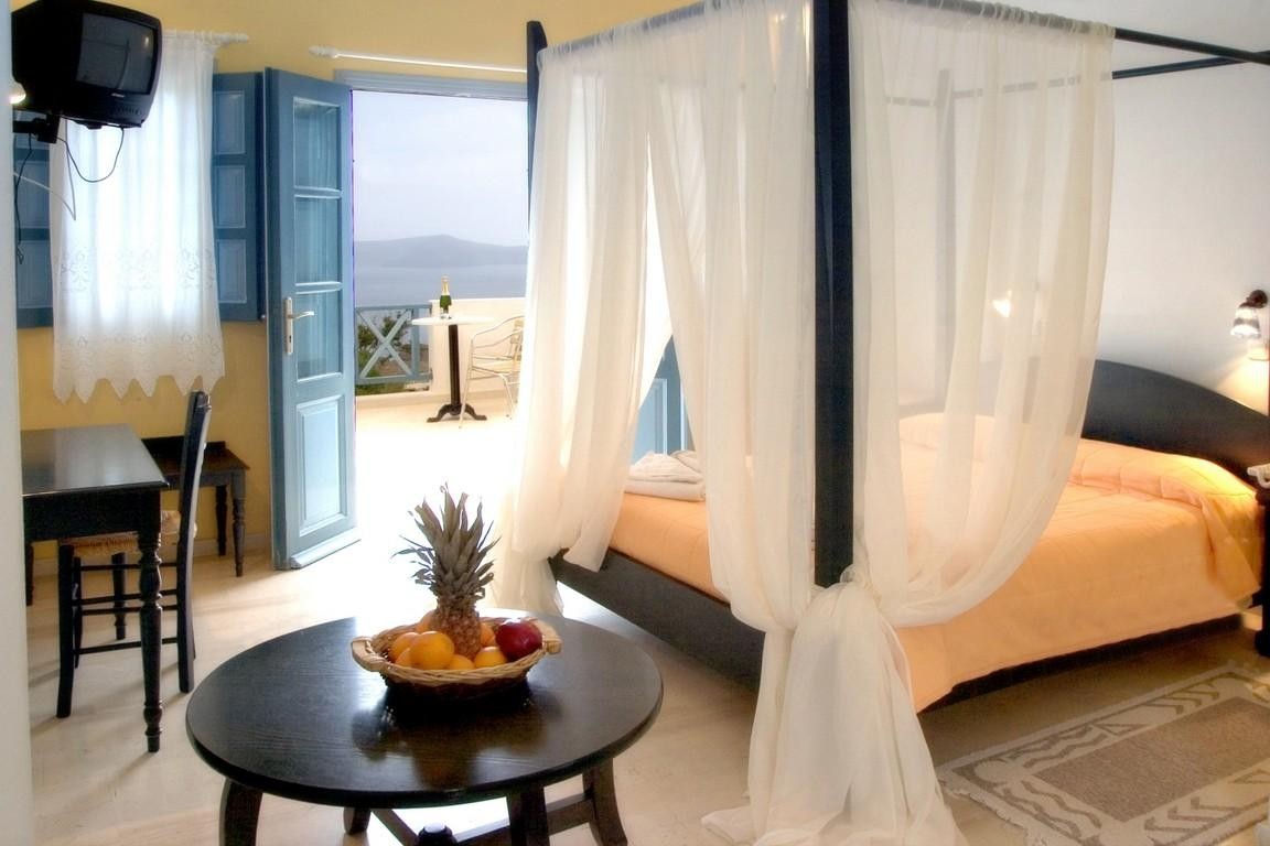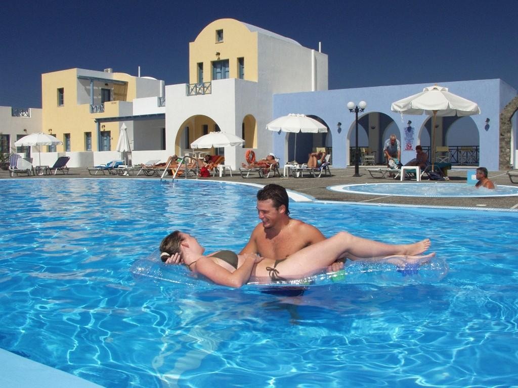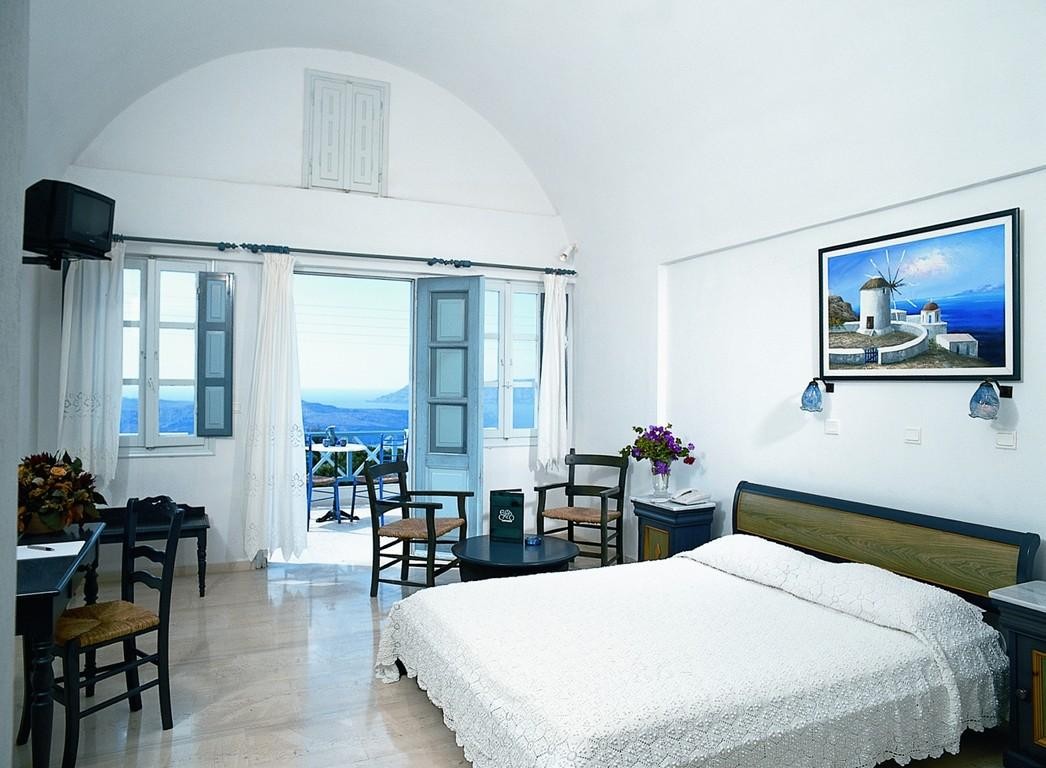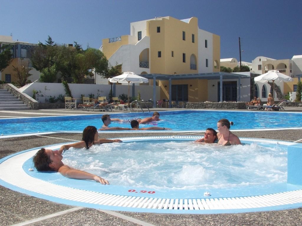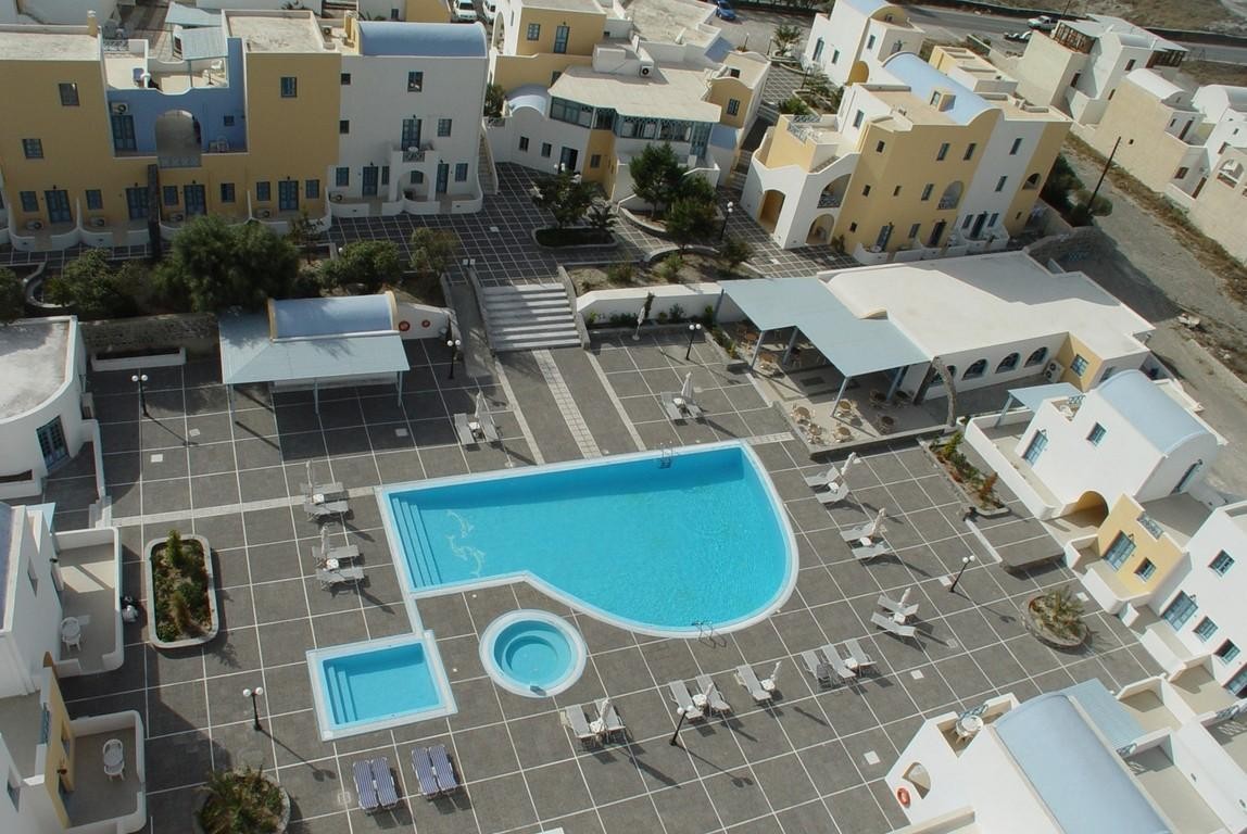 Lokacija: hotel se nalazi u mestu Fira 450m od centra mesta gde se nalaze luksuzni butici, zlatare, kafići,restorani. Dobra autobuska veza sa mestima na litici (Firostefani,Imerovigli i Oia) i poznatim turističkim mestima na plaži (Kamari, Perisa,Perivolos). Aerodrom je udaljen 6km, a Monolithos plaža 7km.