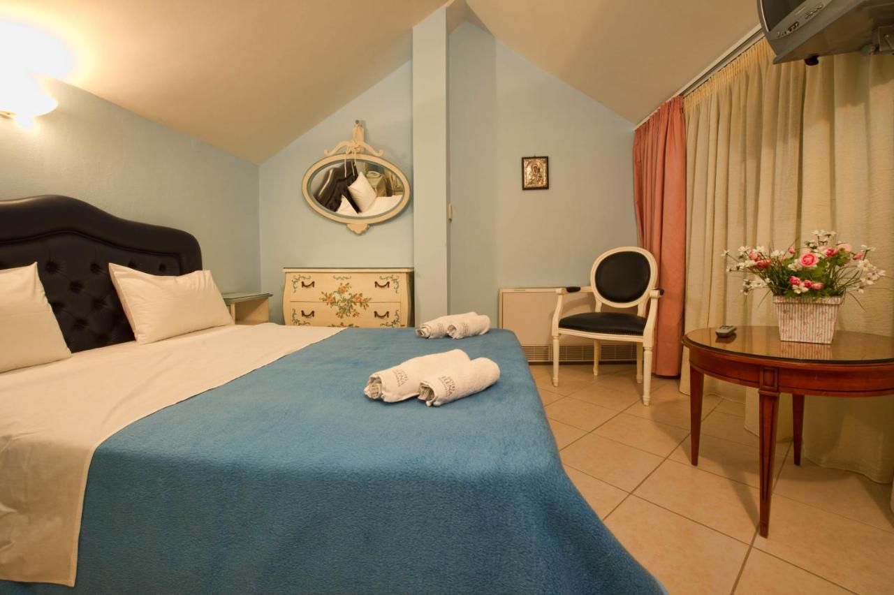 Dvokrevetni apartman: Dvokrevetni apartmani se satoje od spavaće sobe u koju spadaju dva spojena singl ležaja koja se mogu razdvojiti po potrebi, ormar, TV sa lokalnim kanalima, noćni sto sa ogledalom i dva stočića pored kreveta. Iz spavaće sobe se izlazi na terasu, koja je opremljena stolom sa dve stolice. Drugi deo apartmana predstavlja kuhinjski deo sa trpezarijom, koji u svom sastavu ima manji šporet sa tri ringle i rernom, aspiratorom, i manjim frižiderom, kao i stolom za ručavanje sa dve stolice. Kupatilo je opremljeno sa tuš zavesom.