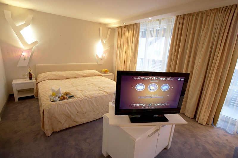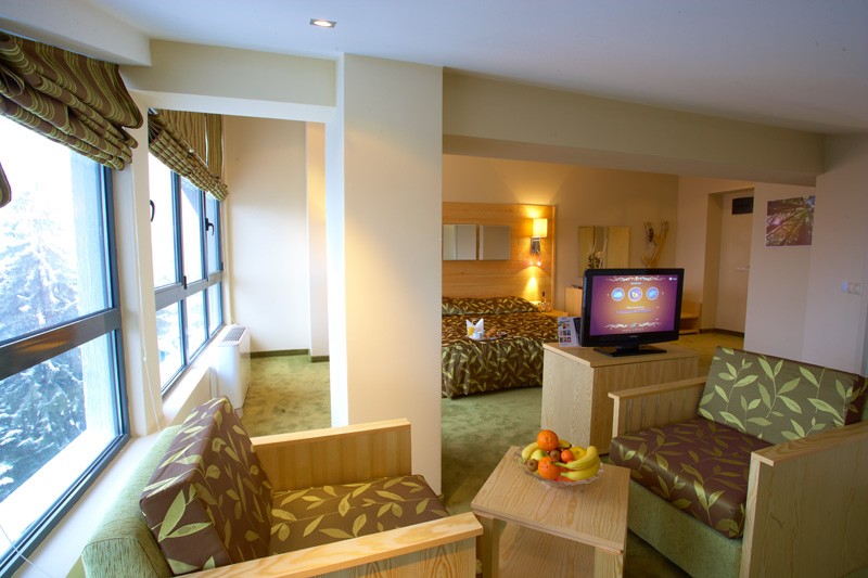 Sadržaj hotela: recepcija, lobi bar, restoran, menjačnica, sef, wi-fi internet, spa centar, zatvoreni bazen, fitnes sala, masaža, sauna, solarijum, bilijar, noćni klub, skijašnica, parking, shuttle bus do gondole.