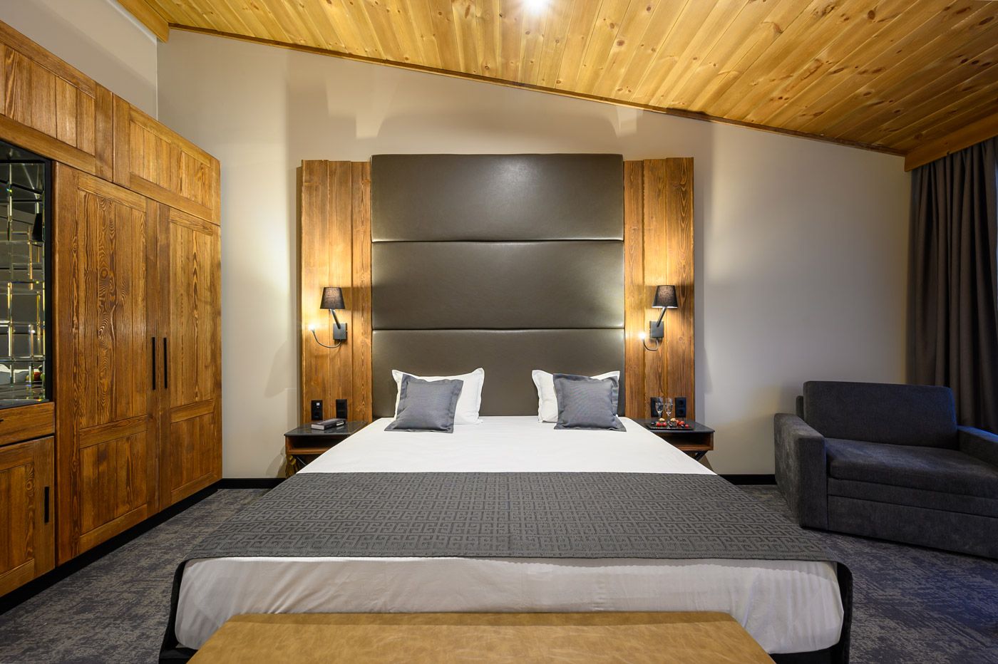 Executive soba 2+1: 38 m2, komforna i luksuzno opremljena soba sa francuskim ležajem i foteljom, balkon sa pogledom na bazen i planinu Pirin. Mogu boraviti maksimalno dve odrasle osobe i jedno dete do 5.99 godina.