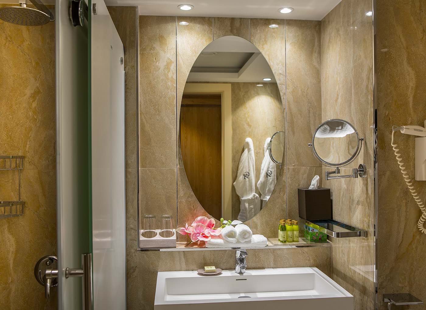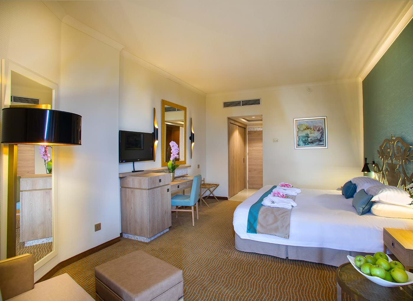 Prostrane sobe hotela Grand Resort Limassol imaju besplatan WiFi, LED TV, sef u koji može da stane laptop i mini-bar. Kupatila su opremljena bademantilima, papučama i toaletnim priborom. Svaka spavaća soba ima balkon, a većina pruža pogled na Sredozemno more. Gostima je dostupan i pribor za peglanje.
