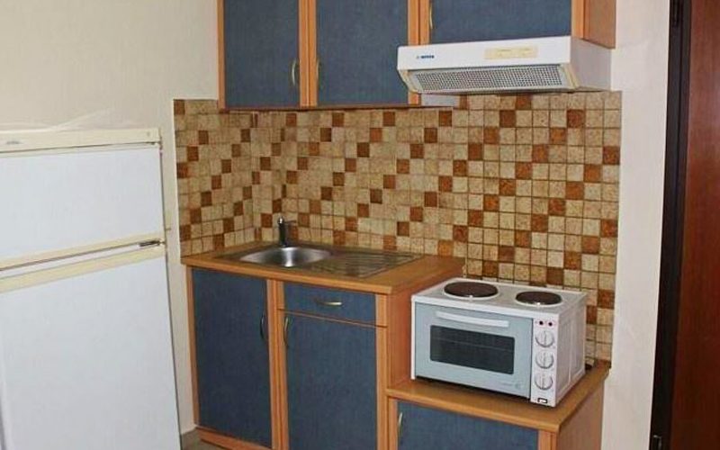 Studija: mini kuhinja opremljena osnovnim posuđem za kratku pripremu laganih obroka uz vremenski minimalno kuvanje, klima uređaj (uz doplatu), sef (uz doplatu), frižider , Wi-Fi (besplatno), TV i peškiri, balkon/terasa.