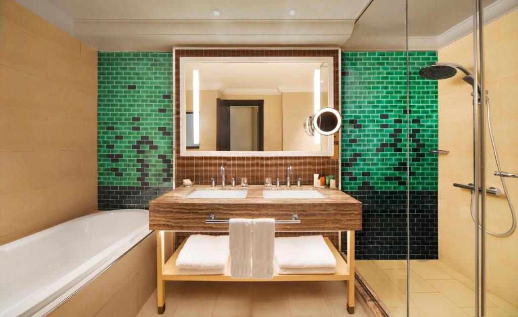 King soba: oko 46-50 m2, dvokrevetna, glavna zgrada, pogled na grad, radni sto, kauč, 1 bračni krevet (king size), tuš i kada, wc, ogrtač, papuče, fen za kosu, klima uređaj, minibar, sef, TV, radio , Telefon, WiFi, apparat za kafu/ čaj, balkon ili terasa
