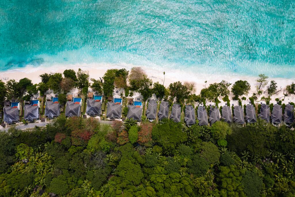 King Sanctuary Pool Villa: oko 185 m² (od toga spoljašnji deo oko 50 m²) (8), kao Beachfront Villa sa okruglom kadom, velikom ugaonom sofom, velikim paviljonom u spoljašnjem delu i bazenom. Vile se nalaze usred tropske šume sa impozantnim granitnim stenama, bez direktnog pristupa plaži. Iznajmljivanje bicikla tokom boravka uračunato.