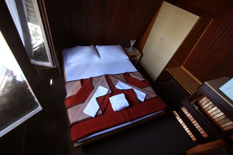 Tip B: Drveni bungalovi idealni su za boravak parova. Tri reda drvenih bungalova nalaze se u istočnom bloku hotelskog naselja naspram nudističke plaže. U prizemlju bungalova je mali hol i kupatilo, a kružne drvene stepenice vode na gornji sprat gdje je spavaća soba sa francuskim ležajem, toaletni sto i orman, klima, TV i mini frižider. Svaki bugalov ima malu verandu sa pogledom na more.