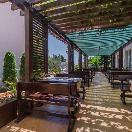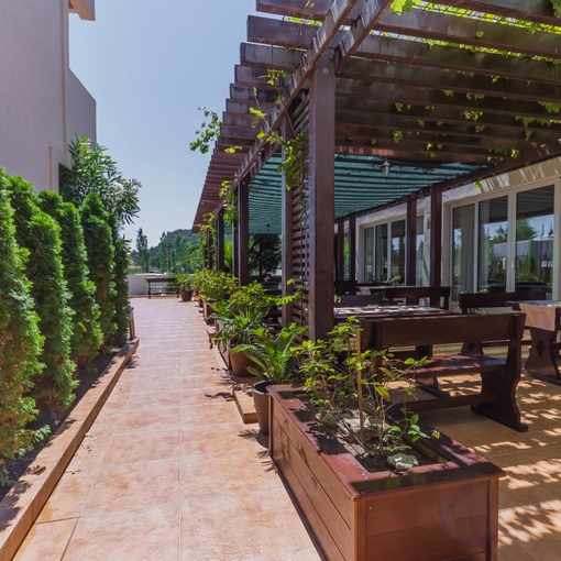 Hotel Adria Harmony raspolaže recepcijom, restoranom, letnjom baštom, koja je okružena zelenilom, tu je i kutak za najmladje goste.