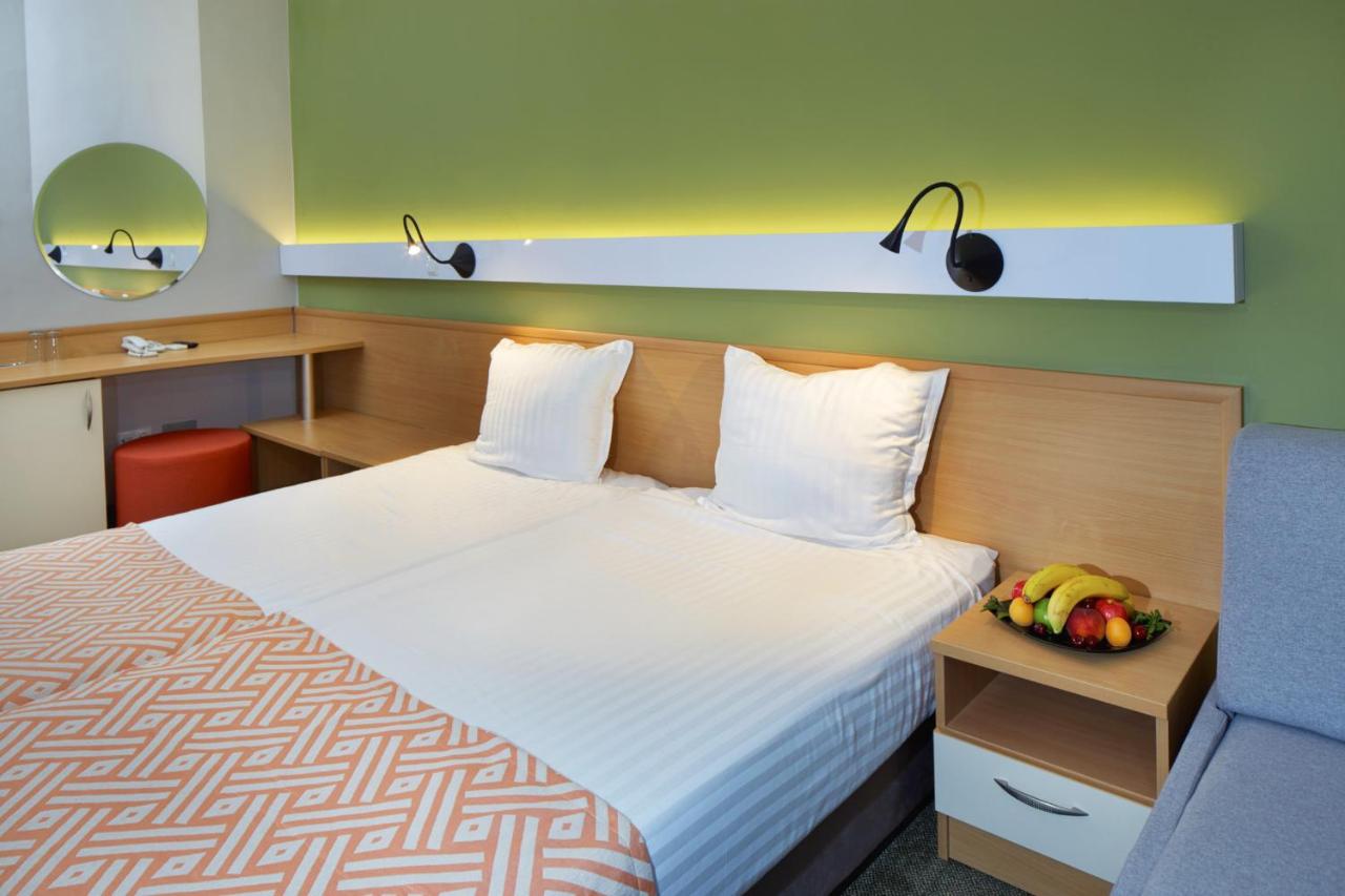 Smestaj : Hotel Aktinia raspolaže sa 4 apartmana, 24 studija i 70 dvokrevetnih soba (37 standardnih dvokrevetnih soba i 33 dvokrevetne sobe deluks). Svaka soba ima balkon,klimatizovana je, TV, telefon i mini-frižider.