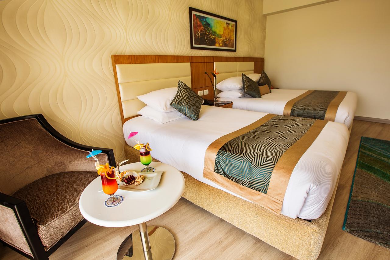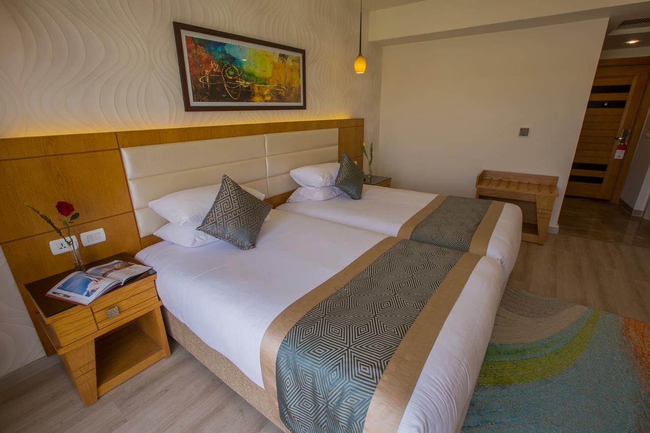 Sobe: Sobe su dvokrevetne (dva odvojena ležaja ili bračni ležaj) ili dvokrevetne sa pomoćnim ležajem (dva odvojena ležaja ili bračni ležaj i pomoćni ležaj). Hotel raspolaže sa 305 smeštajnih jedinica raspoređenih u trospratnim kaletama. Sve smeštajne jedinice sadrže: kupatilo sa tušem, fen, mini bar, direktnu telefonsku liniju, sef, klima uređaj, SAT TV, balkon/terasu. Sve sobe imaju pogled na bazen ili baštu.