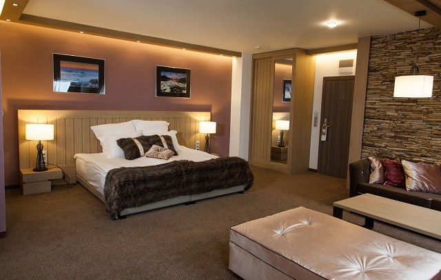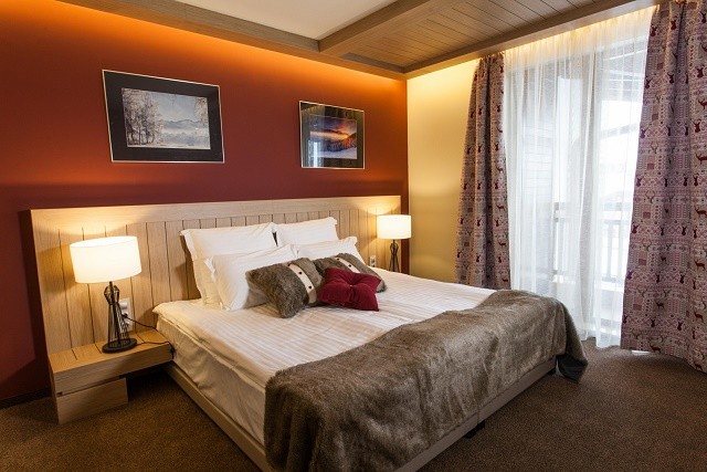 Sadržaj hotela: recepcija, lobi, lobi bar, 3 restorana, lobi bar, VIP bar, Spa centar, zatvoreni bazen, dečiji bazen, relax soba, Finska sauna, panoramic infrared sauna, parno kupatilo, đakuzi, konferencijska sala , dečija igraonica, skijašnica, internet, minibus prevoz do gondole, parking.