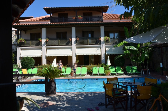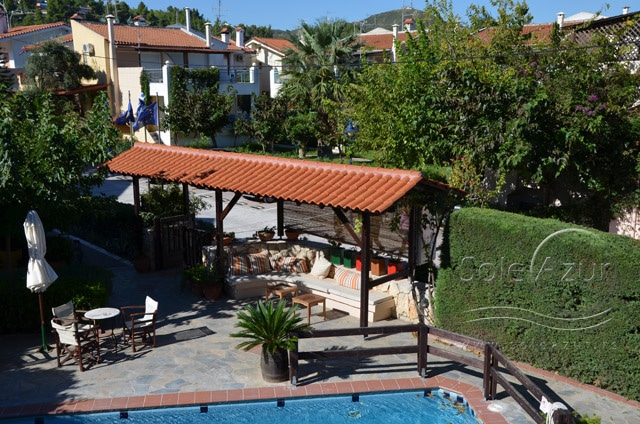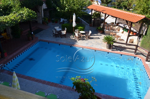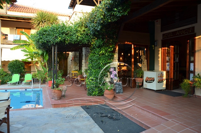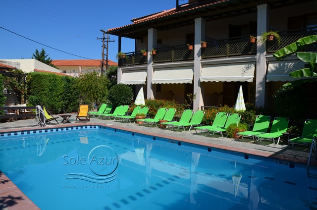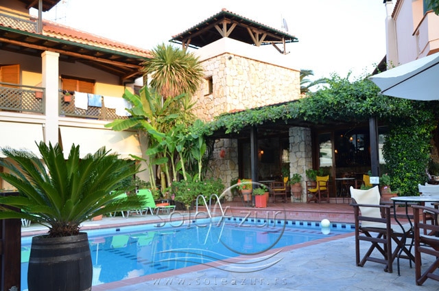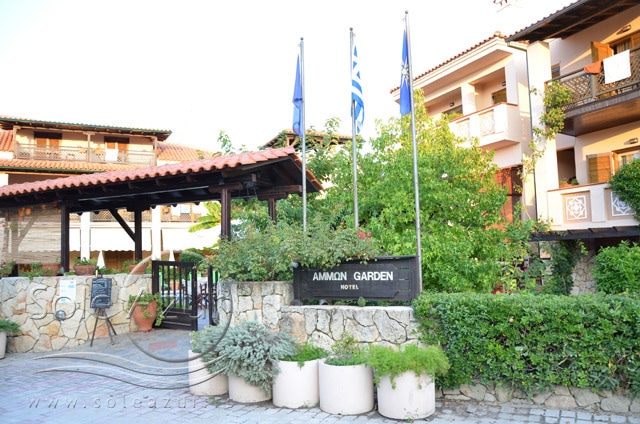 HOTEL AMMON GARDEN 3* Hotel se nalazi u mirnom delu Pefkohorija. Reč je o intimnom hotelu manjeg kapaciteta. Usluga u hotelu je na bazi noćenja sa doručkom (švedski sto). Hotel dobija dosta pohvala koje se odnose na izvanredan servis, diskretnost, mir. Okružen je vrtom punim cveća, mediteranskog rastinja u kojem se nalazi bazen. Hotel ima recepciju, bar kraj bazena. Hotel poseduje studije, koji imaju pristup za invalide. Studiji sadrže malu kuhinju sa frižiderom, TV, telefon, fen za kosu, klimu (uključena u cenu studija),terasu. Održavanje čistoće je svakodnevno (osim nedeljom). Studiji su veličine 25– 35 m2 + terasa. Terase su opremljene garniturom za sedenje. Pojedini studiji gledaju direktno na bazen, dok pojedini gledaju na ulicu i dvorišni deo. Hotel je lociran ispod glavnog puta, oko 80m od plaže i oko 250m od centra Pefkohorija.
