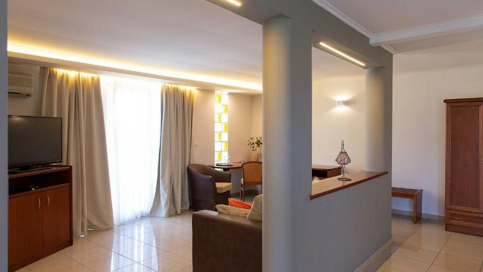SOBE: Sve sobe imaju kupatilo sa kadom ili tuš kabinom, klimu, tv, balkon ili terasu, mini frižider/ minibar. Dečiji krevetac na upit, besplatan.