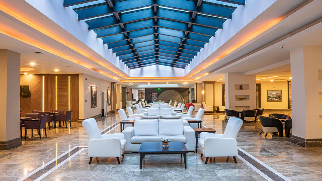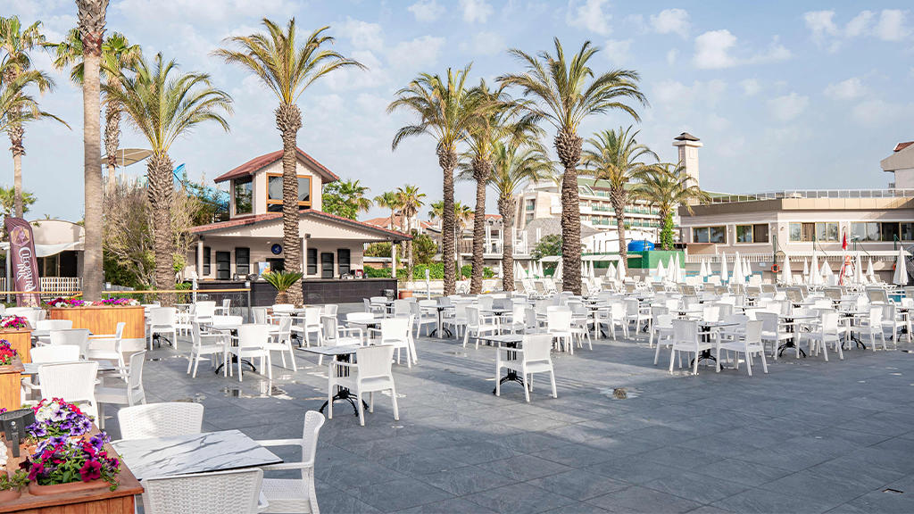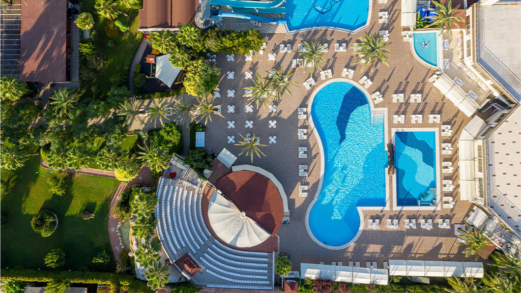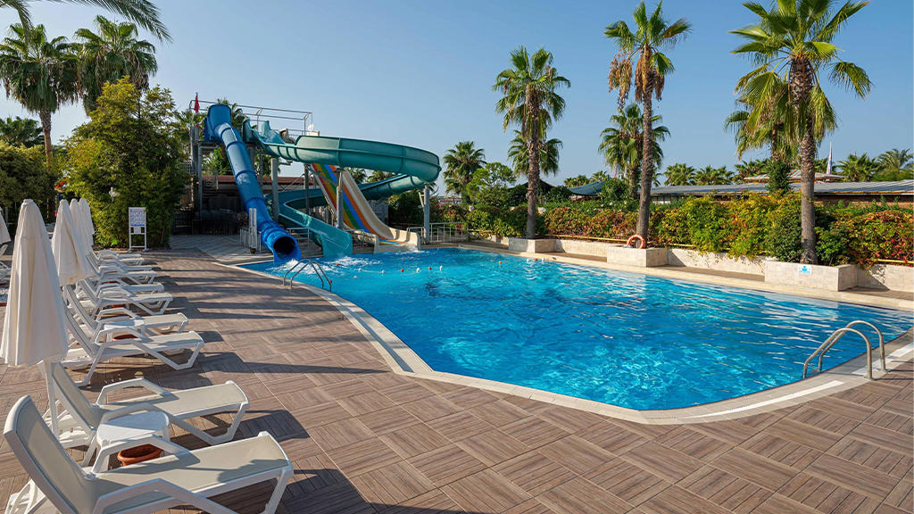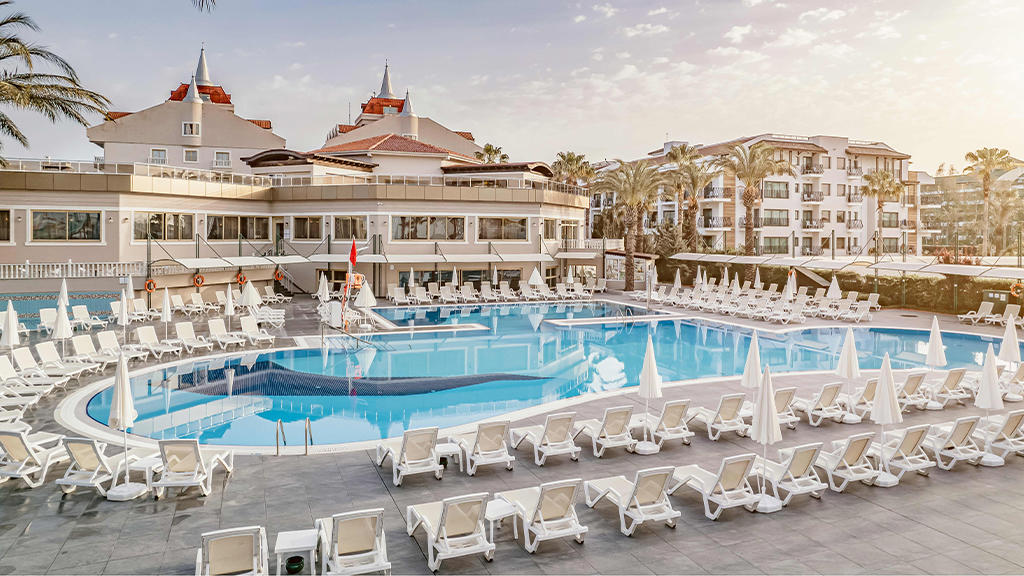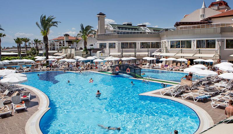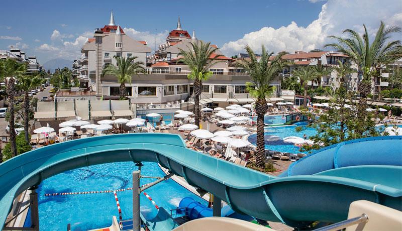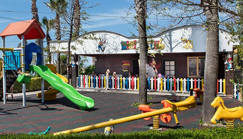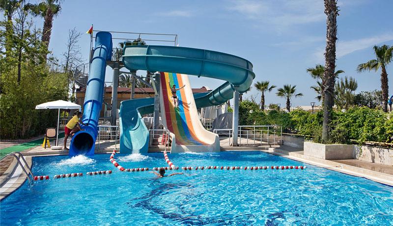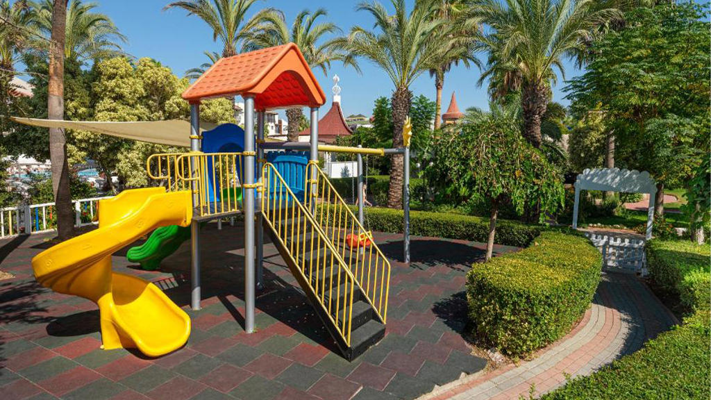 Hotel u svom sastavu poseduje zatvoreni otvoreni bazen za odrasle i decu, 3 tobogana, fitnes centar, sauna, tursko kupatilo, stoni tenis, odbojka na plaži, tokom dana organizuju se zabavni programi, takmičenja pored bazena i na plaži, večernji šou programi, mini klub za decu uzrasta od 4 do 14 godina. Prema pravilima hotela posebno se doplaćuju: SPA centar, masaža, sportovi na vodi, kozmetički salon, bilijar, soba za igru, usluga pranja veša, usluga lekara, čuvanje dece, prodavnice, frizer, telefon, fax, internet kafe, kompjuterske igrice, rent a car. Glavni restoran, barovi u okviru hotelskog kompleksa, disko klub i A'la Carte restoran (restoran sa jelima sa roštilja, riblji). Privatna plaža hotela je peščana sa suncobranima i ležaljkama. Peškiri za plažu dostupni uz depozit.
