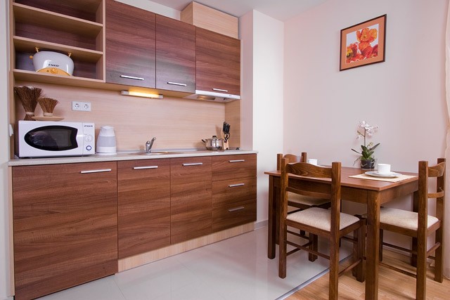 Apartman za 6 osoba: jedna spavaća soba sa francuskim krevetom, druga spavaća soba sa dva odvojena kreveta i dnevni boravak sa dvosedom na razvlačenje.
