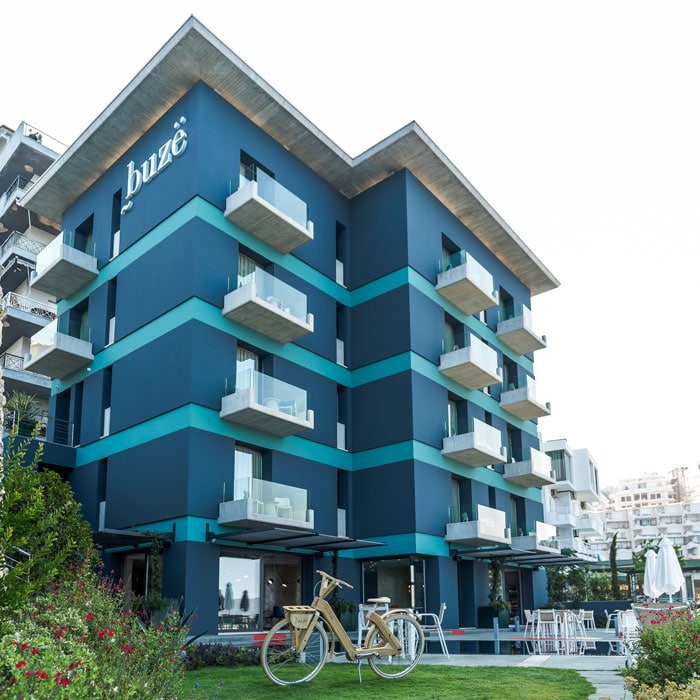 Hotel Buze Boutique 4*, Saranda (Albanija) - nalazi se u Sarandi, na 250m od Maestral plaže, a na oko 1 km od Flamingo plaže. Hotel Buze poseduje privatnu plažu, takodje raspolaže sa restoranom, besplatnim privatnim parkingom, recepcijom, bazenom na otvorenom, room service, i besplatan WiFi u celom objektu. Sve smeštajne jedinice poseduju klima uredjaj, vlastito kupatilo, garderober, flat-screen TV sa satelitskim kanalima. Usluga u hotelu Buze je na bazi noćenja sa doručkom.