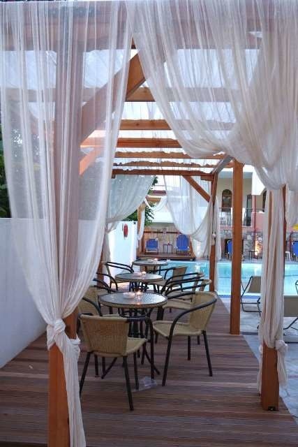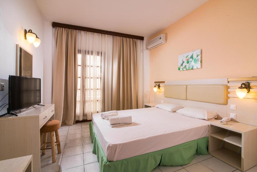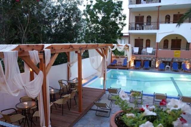 Sadržaj hotela: bazen na otvorenom, bar kraj bazena, snek bar, velika terasa sa ležaljkama i suncobranima, restoran, večernja zabava, „happy hour“ u glavnom baru svako veče, recepcija, lobi sa velikim SAT TV-om, pikado, menjačnica, mini golf…150m od plaže; 100m – Hanioti centar; 85km – Solun; otvoren tokom letnje sezone.