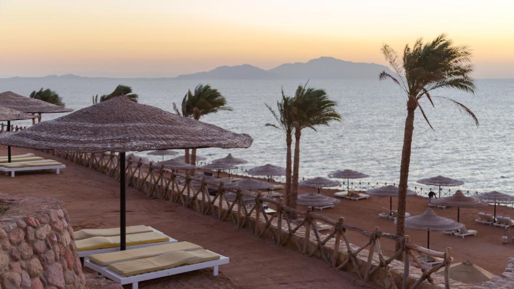 Lokacija: Hotel Coral Beach Resort Tiran je smešten u oblasti Ras Nasrani, u zoni Shark’S Bay. Uređena plaža hotela Coral Beach Resort Tiran , sa pontonom, nalazi se na prelepom, živopisnom koralnlom grebenu koji se ubraja među pet najlepših lokacija za ronjenje i snorkling na Sinaju. Hotel je udaljen od aerodroma 8 km, a od centra Nama Bej 7 km.