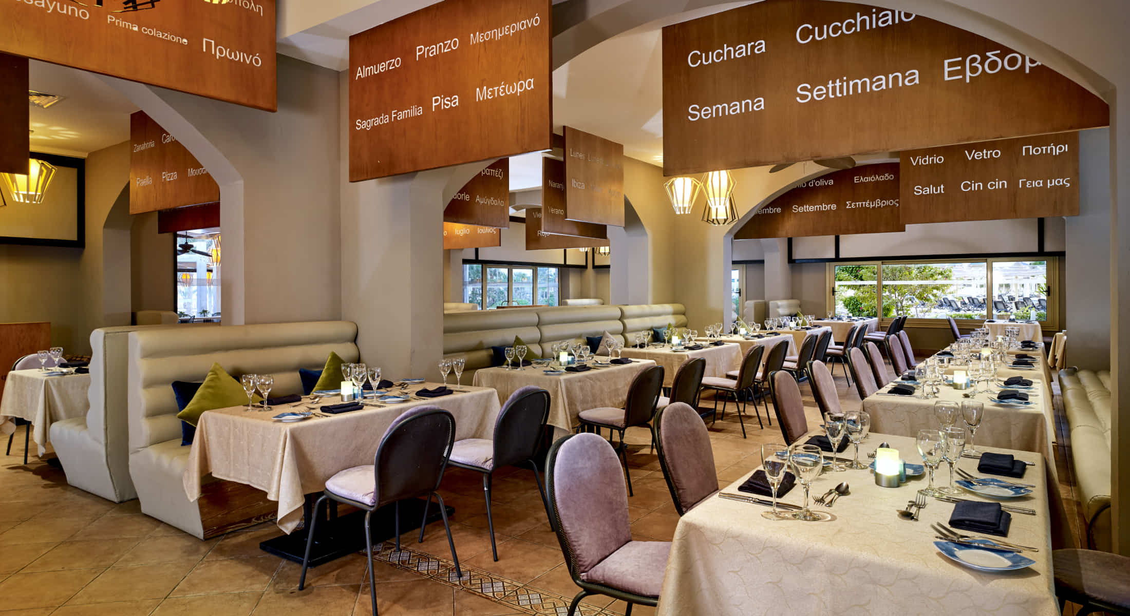 Hotelski sadržaj: Osim pansionskog restorana, gostima hotela su na raspolaganju a la carte restorani azijske, indijske, meksičke i mediteranske kuhinje (besplatno jednom tokom boravka, uz obaveznu rezervaciju). Od ostalih sadržaja u ponudi je 7 barova - bar pored bazena i na plaži u kojima se u tokom dana poslužuju različite vrste osvežavajućih napitaka i laganih obroka, lobi bar, sport café, bar The Piazza na terasi sa pogledom na lazy river, bežični internet ograničene brzine u celom rezortu, menjačnica, razne prodavnice I servis za pranje i peglanje.