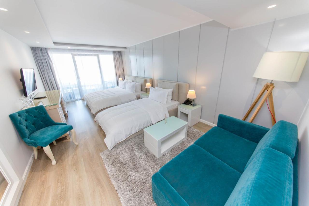Sve sobe su klimatizovane, sa flat-screen TV, mini-bar, balkon sa pogledom na more ili grad, kupatilo sa tušem.
