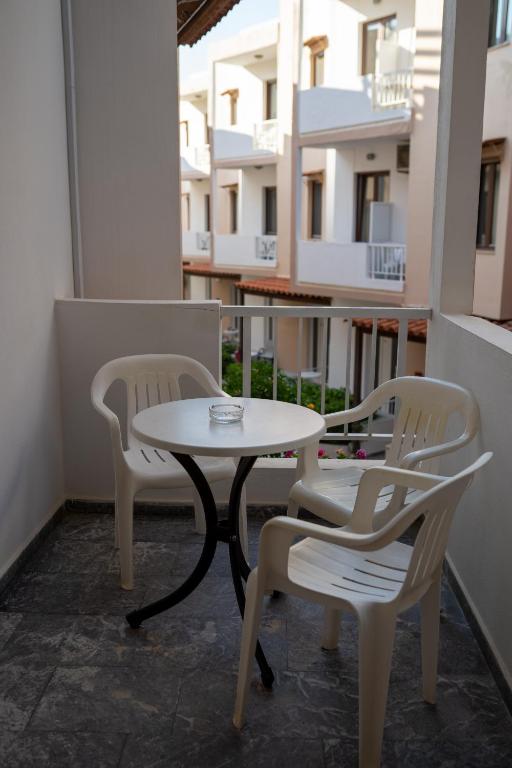 Sobe: studija/apartmani imaju minikuhinju, kupatilo, klimu (uz doplatu), sef (uz doplatu), TV. Apartmani imaju odvojenu spavaću sobe od dnevne sobe sa kuhinjom. Svi imaju pogled na more.