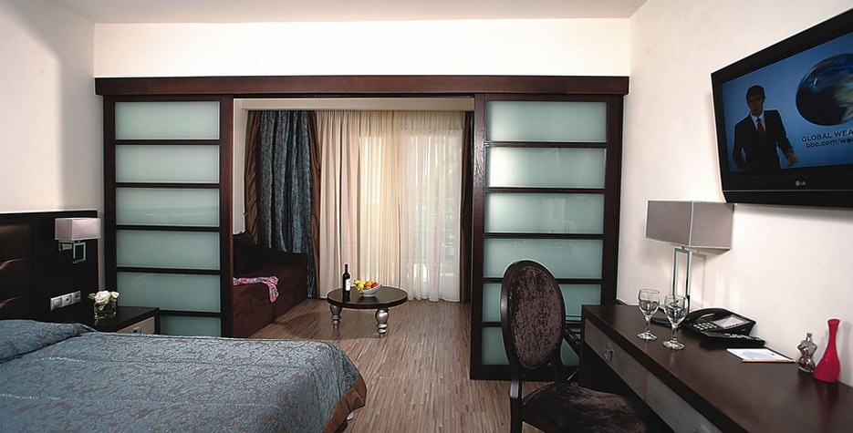 Sadržaj soba: hotel raspolaze sa 87 soba. Svi apartmani i sobe su prostrane i opremljene klima uređajem, satelitskom TV, kupatilom, telefonom, mini barom i balkonom/terasom.