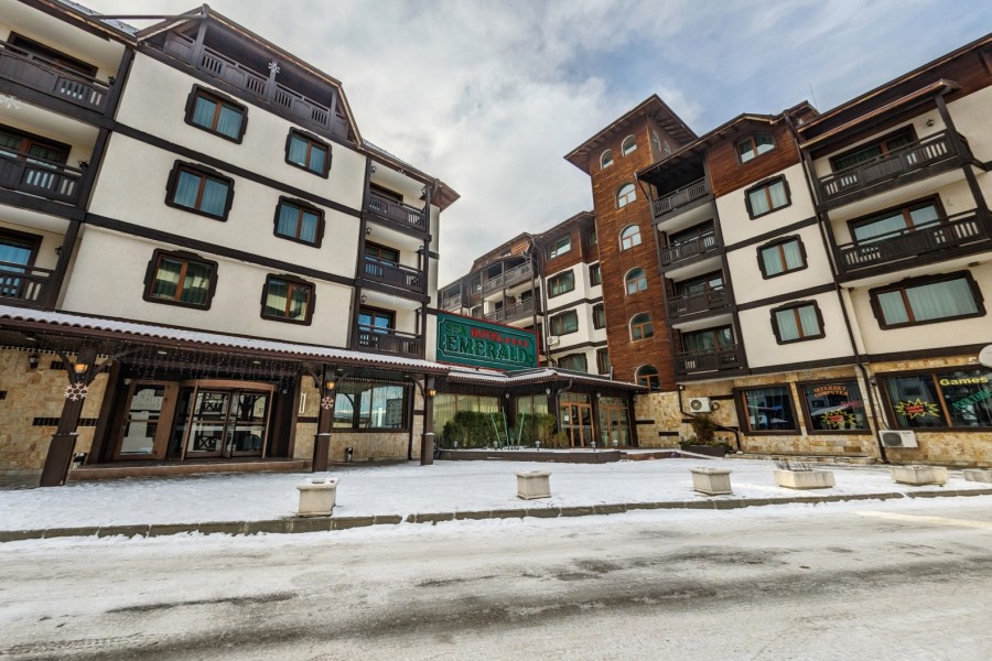 Lokacija: Hotel Emerald Spa Bansko 4* (naša ocena 3*) se nalazi na odličnoj lokaciji, u neposrednoj blizini glavne raskrsnice i semafora u Banskom. Udaljen je od gondole svega 100 m, „na korak“ od brojnih prodavnica, mehana i kafića u novom centru (oko semafora) , a od starog centra 900 m.