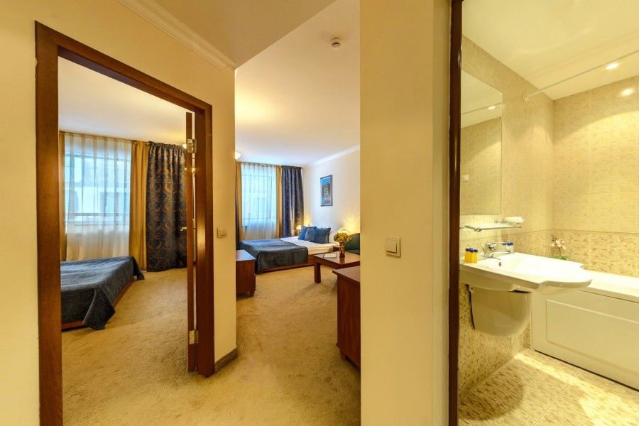 Standardna soba za 2-3 osobe (2+1): 40 m², francuski ležaj ili dva odvojena ležaja, pomoćni ležaj (fotelja ili krevet na rasklapanje. Namenjena smeštaju maksimalno 3 odrasle osobe.