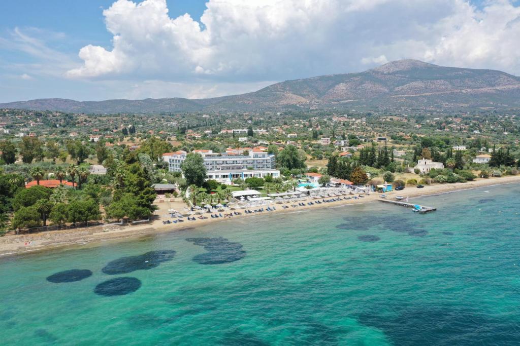 Hotel Grand Bleu 3* (Eretria,Evia) je udaljen 110 km od aerodroma u Atini. Vrlo brzo se do hotela stiže I kopnom, preko novoizgrađenog mosta koji povezuje kopno sa ostrvom. Hotel se nalazi 2 km od grada Eretria. Predivna kombinacija kristalno plave vode mora Evie sa zelenim baštama, pomoćiće da se odmorite I uživate. Raznovrsna i ukusna internacionalna i Grčka kuhinja će Vas očarati.