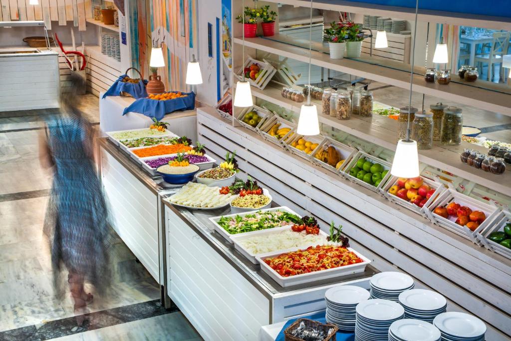 Hotel sadrži glavni restoran, tavernu na plaži, bar na bazenu, bar na plaži, glavni bar, prostranu recepciju, privatnu plažu, bazene, besplatan wifi internet dostupan na recepciji, video igrice, bilijar, konferencijsku salu, amfiteatar, mini market, zlataru, disko, sportove na vodi (uz doplatu), čuvanje dece, mini klub za decu, službu za pranje veša, besplatan parking.