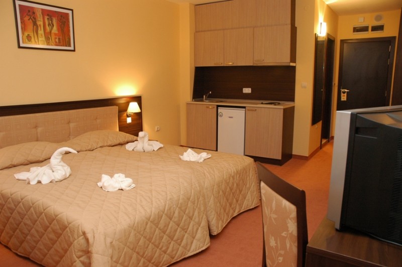 Sadržaj hotela: recepcija, lobi, lobi bar, glavni restoran, mehana, zatvoreni bazen, fitnes, đakuzi, sauna, parno kupatilo, solarijum, masaža, konferencijska sala, parking.