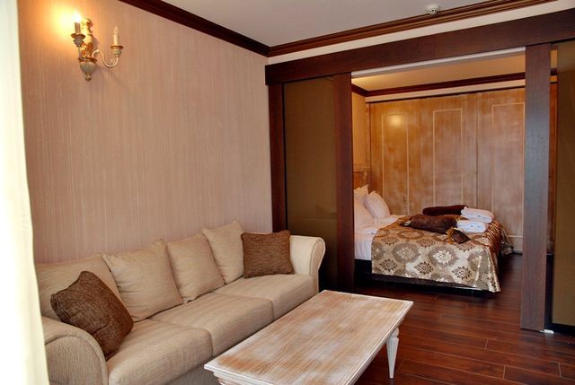 Jednosobni apartman za 2-3 osobe (2+1): 50 m2, spavaća soba sa francuskim ležajem ili dva odvojena ležaja, dnevni boravak sa sofom na rasklapanje, minibar, SAT TV, internet, kupatilo sa tušem.