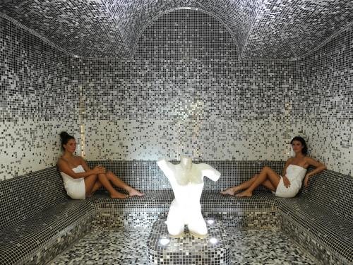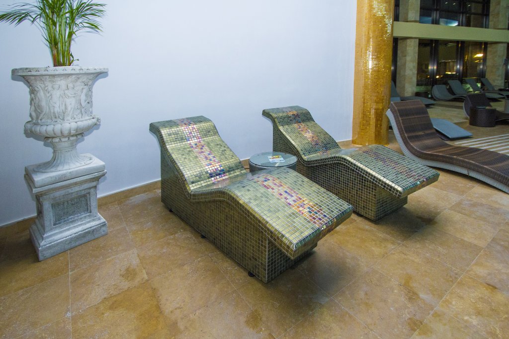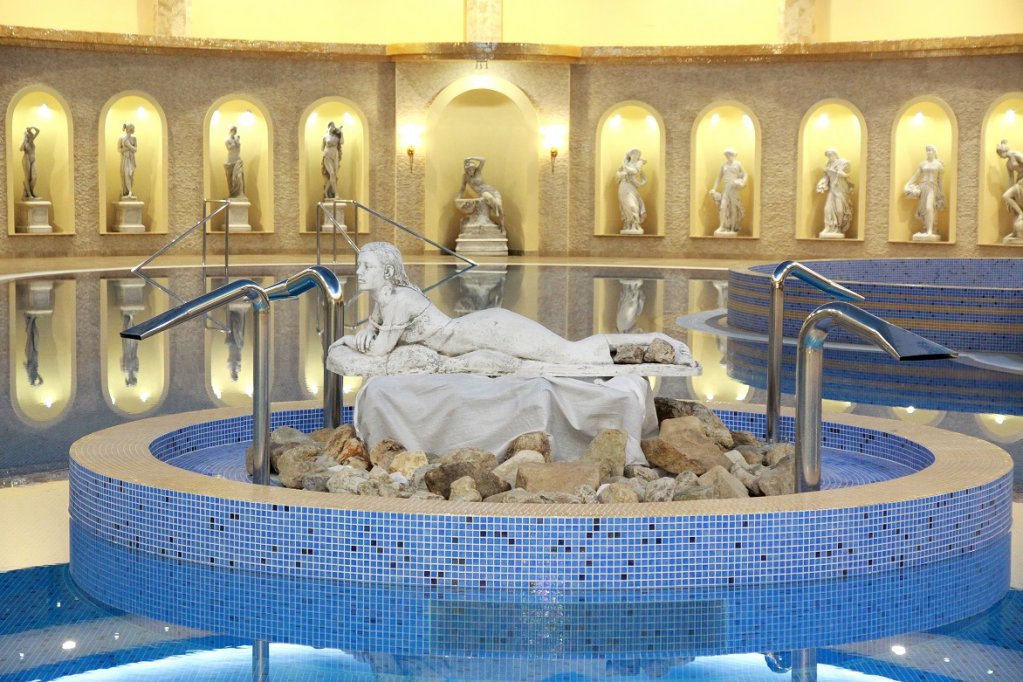 U ponudi se nalaze: veliki centralni bazen (30°C), 2 bazena za decu, đakuzi, bazen za odmaranje (36°C), vrući bazen (38°C), relaks soba, parno kupatilo, bio sauna, ruska banja, finska suva sauna i veseli tuševi. Ovi sadržaji su besplatni za goste hotela.