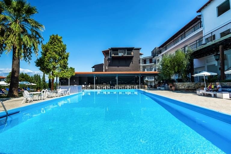 Udaljenost oko 90km od Soluna; otvoren cele godine; Udaljenost od plaže: 1km (za sve goste hotela – besplatan transfer vozićem do plaže).