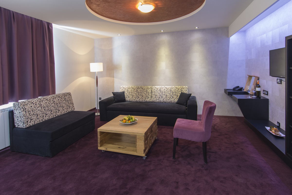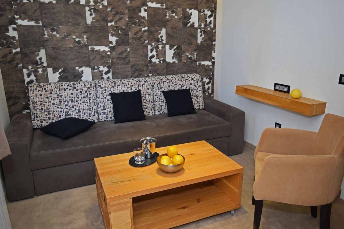 *Superior apartman površine (33 m2) nudi sobu sa bračnim ležajem i dnevni boravak sa pomoćnim-trosed ležajem na razvlačenje, prilagođen za dve do četiri osobe.