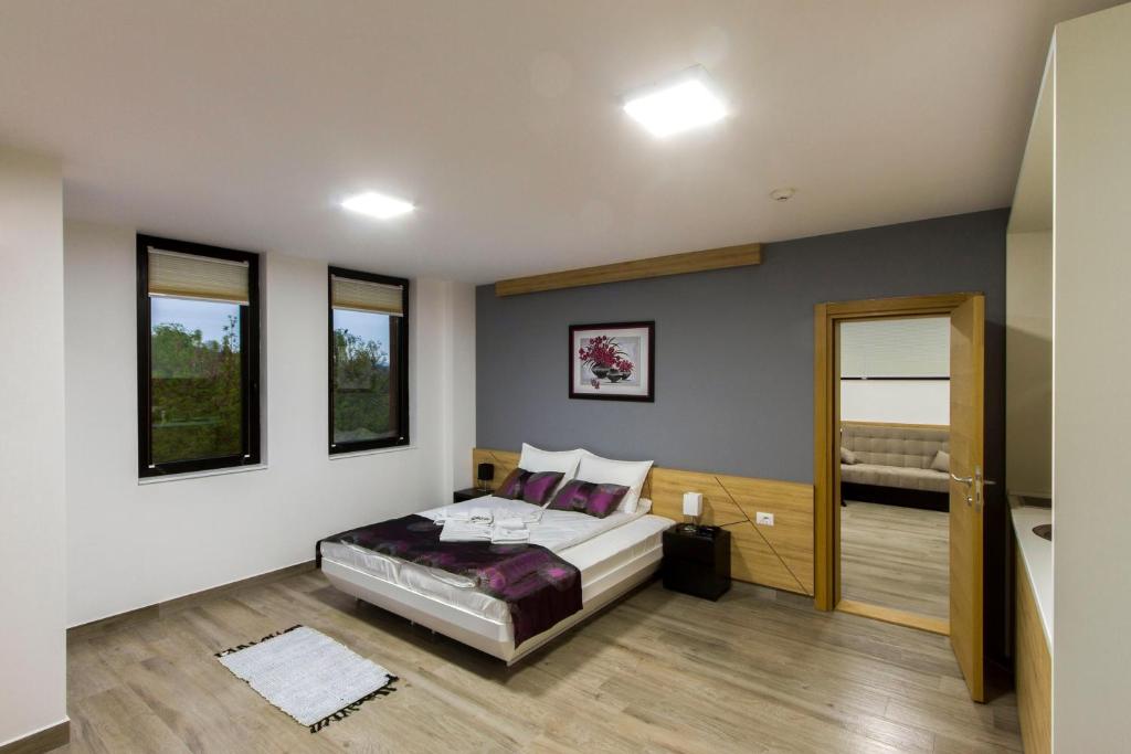 Duplex Family apartmani: Na svakom spratu postoji mogućnost spajanja standard I comfort sobe duplim vratima. Idealno za dve porodice koje žele zajedno da gostuju ili za veće porodice sa vise dece ili ostalim članovima porodice. Svi apartmani imaju kuhinju, frižider, kupatilo (tuš kabina, podno grejanje, sušači peškira, fen za kosu, papuče), LCD TV, kablovsku, telefon, besplatni WIFI, sef, klima.