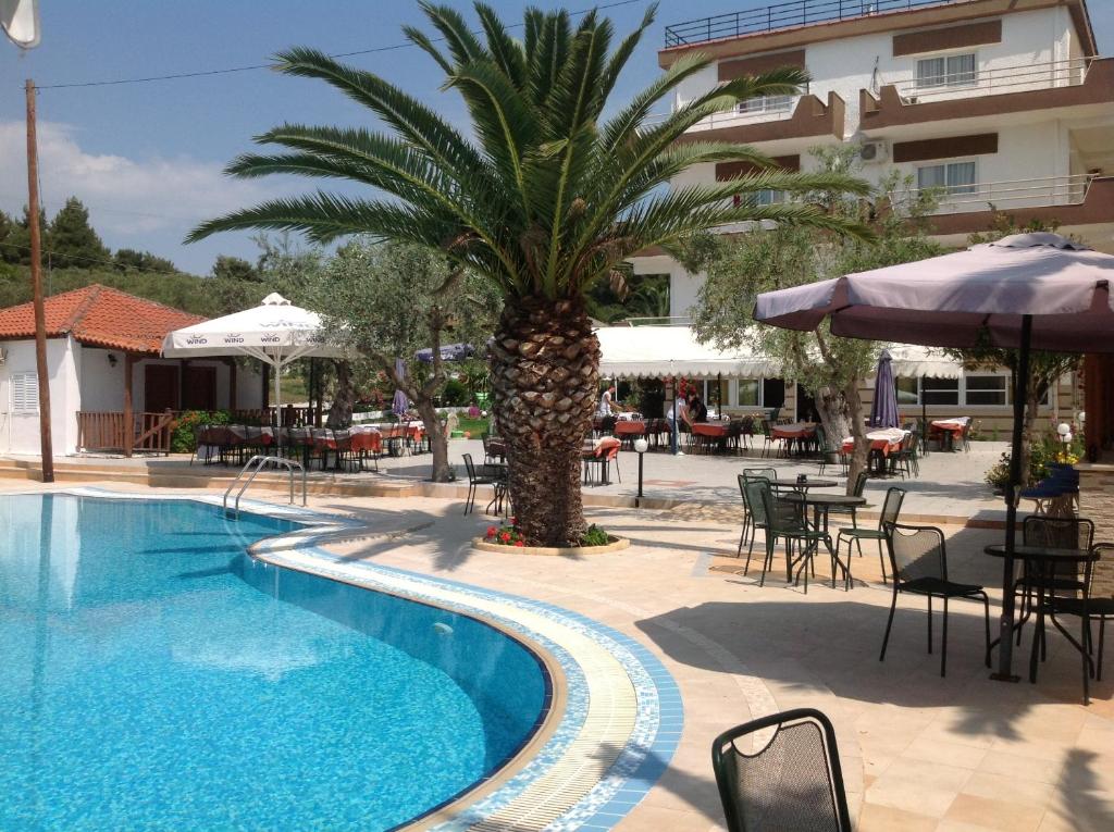 Sadržaj hotela: U hotelskom restoranu služe se doručak i večera. U kafi i pićima možete uživati u hotelskom kafe-baru. Ljubiteljima sporta i rekreacije na raspolaganju je teren za košarku. U hotelu se svake sedmice organizuju grčke večeri. Hotel u svom sastavu poseduje mini market, vrt sa igralistem i bazen sa barom i terasom za suncanje. U okviru objekta obezbeđen je i besplatan privatni parking.