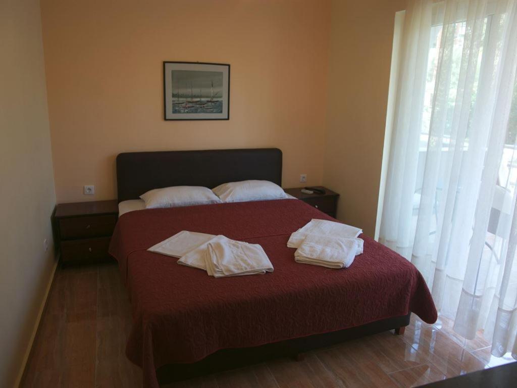 *Dvokrevetne sobe – oko 20 m2, sastoji se od francuskog ili dva standardna ležaja, uz mogućnost ubacivanja dodatnog ležaja . Namenjen za smeštaj 2-4 osobe . Sobe gledaju na baštu ili more, sve poseduju kupatilo sa tušem i malu kuhinju, TV, telefon i klima uređaj.