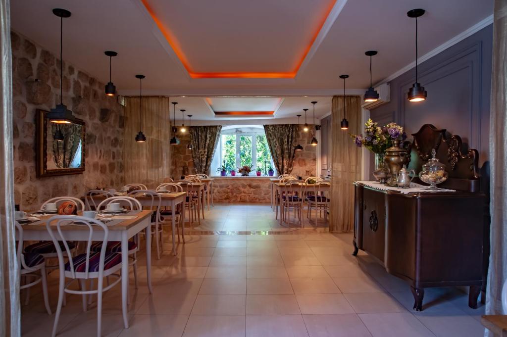 Sadržaj hotela: dva objekta sa restoranom, fitnes studiom, primorskom baštom, ponton za čamce i sunčanje, parking, unutrašnje dvorište-terasa od kojih jedna ima bazen, dok za pristajanje čamaca, prostorija za čuvanje prtljaga, room service, wifi.