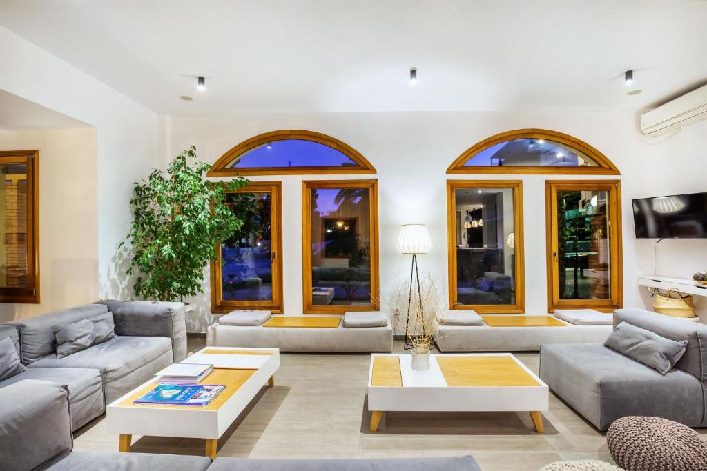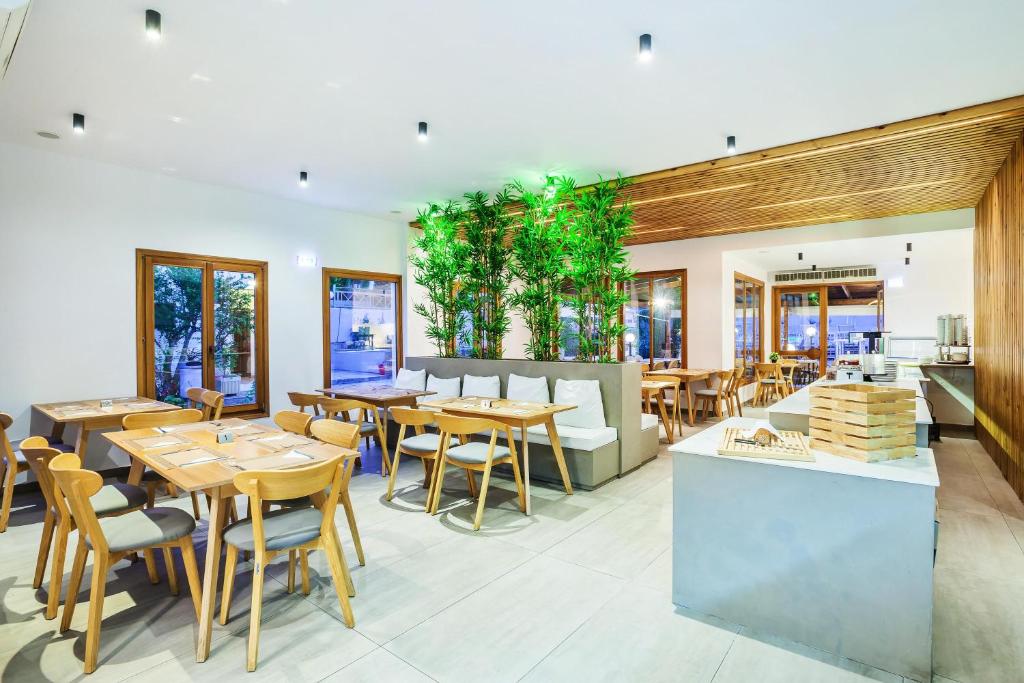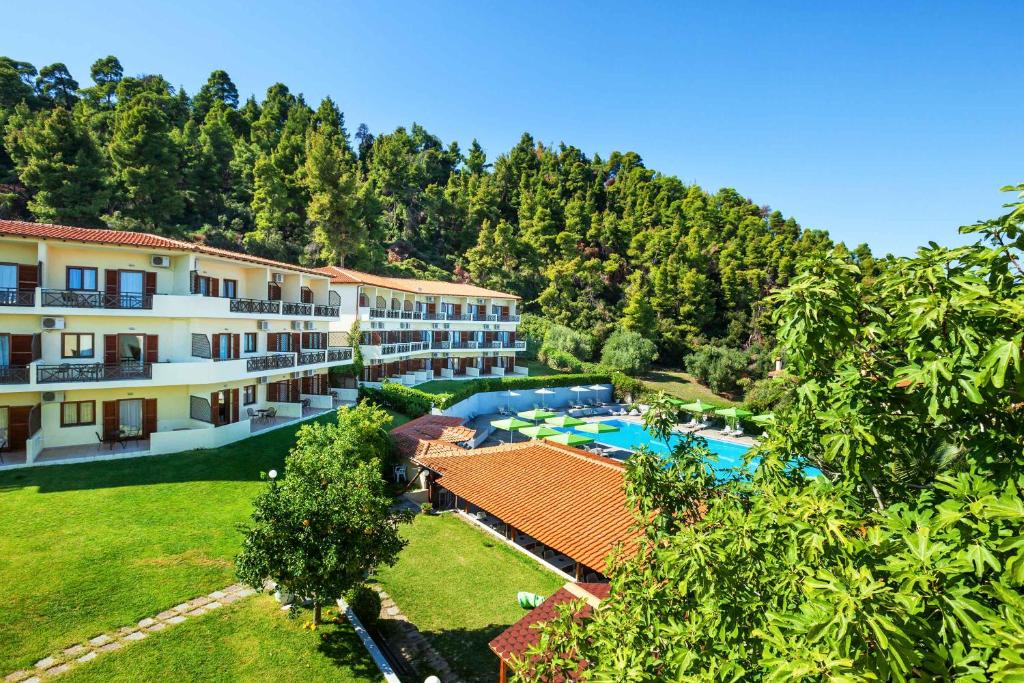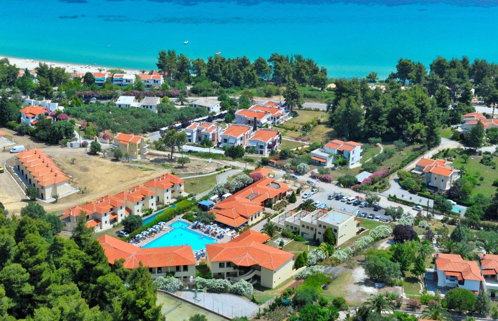 Sadržaj hotela: recepcija (na raspolaganju 24h), veliki bazen sa hidromasažnim delom, restoran, taverna, bar pored bazena, lobi, frizerski salon, dečje igralište, tereni za tenis (uz doplatu na licu mesta), košarku i odbojku, „Internet corner“ (besplatno), TV sala, wi-fi Internet u javnim delovima hotela (besplatno), rent-a-car i parking. Suncobrani i ležaljke oko bazena su uključeni u cenu, a na plaži (plaža hotela Athos Palace i Pallini Beach) se doplaćuju , prevoz do mesta Kriopigi i plaže koja je udaljena oko 600m od hotela.