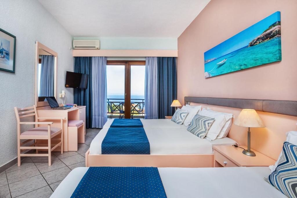 Hotel Palladium 3* (Kriopigi, Grčka) Na uzvišenju, okružen borovom šumom, sa prelepim pogledom na more, hotel Palladium nudi prijatnu, idiličnu atmosferu uz neprikosnovenu grčku gostoljubivost. Ovaj mali prodični hotel ima sve što je potrebno za miran porodični odmor. Resort Kriopigi je udaljen 1,5km, aerodrom 85km i Solun 90km.
